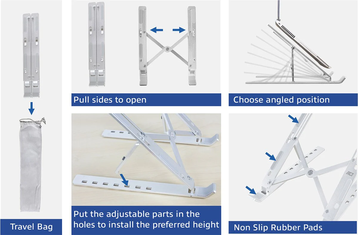 ACT AC8120 Laptopstandaard tot 15.6″ | Draagbaar | Opvouwbaar | Aluminium | 6 Kijkhoeken | Anti-slip