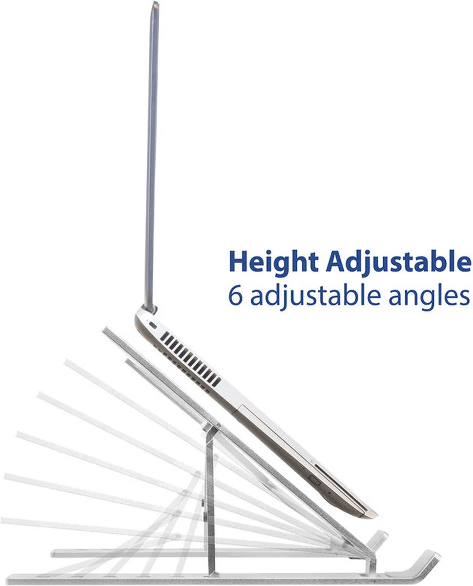 - Dunne opvouwbare aluminium laptopstandaard; voor laptops tot 15,6”