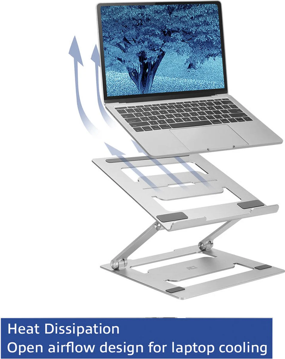 - Dunne opvouwbare aluminium laptopstandaard; voor laptops tot 15,6”
