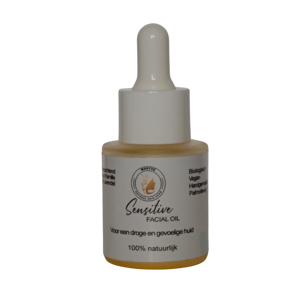 De beste gezichtsolie voor de gevoelige en droge huid is zonder twijfel onze Sensitive Face Oil. Deze hoogwaardige gezichtsolie combineert zorgvuldig geselecteerde ingrediënten die volledig 100% natuurlijk en biologisch zijn, waardoor het niet alleen een veilige keuze is, maar ook een duurzame voor je huid en de planeet. Met de unieke mix van voedende oliën, zoals duindoornolie, jojoba olie en kalmerende kamilleolie, biedt deze olie ultieme verzorging en hydratatie. Het resultaat? Een huid die zijdezacht aanvoelt, intensief gevoed wordt en straalt van gezondheid. Of je nu last hebt van roodheid, een trekkerig gevoel of een doffe teint, deze gezichtsolie helpt om je huid weer in balans te brengen en haar natuurlijke glans terug te geven. Daarnaast trekt de olie snel in en laat deze geen vettig laagje achter, wat het perfect maakt voor dagelijks gebruik, zowel overdag als ’s nachts. Sensitive Facial Oil is dé keuze voor iedereen die natuurlijke verzorging wil combineren met bewezen resultaten voor een