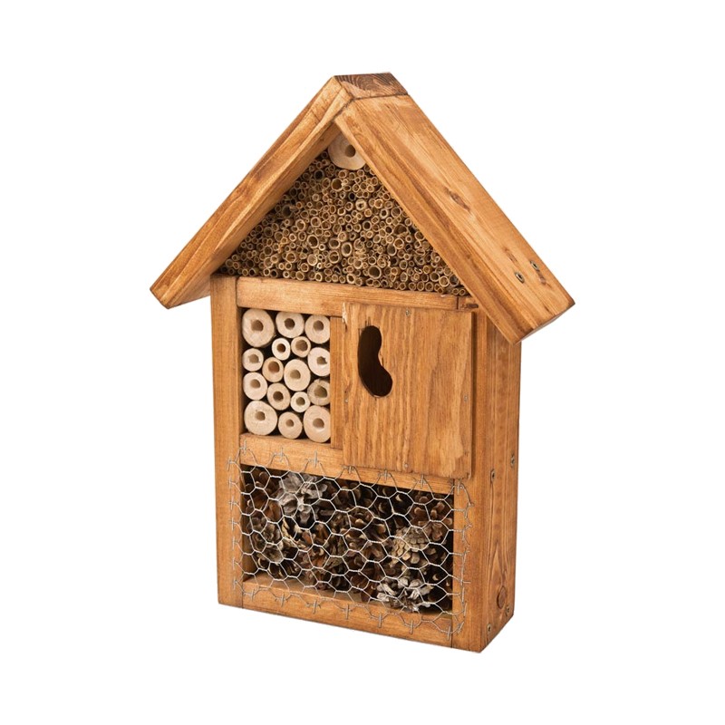 Steeds meer mensen ontdekken hoe belangrijk nuttige insecten zijn voor het ecologisch evenwicht in onze omgeving. Daarom is dit prachtige, handgemaakt insectenhotel een waardevolle aanwinst voor elke tuin. Het biedt bijen, hommels, lieveheersbeestjes en andere insecten een veilige plek om te nestelen, te schuilen en tot rust te komen.