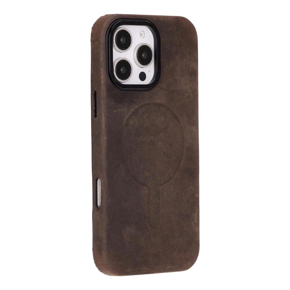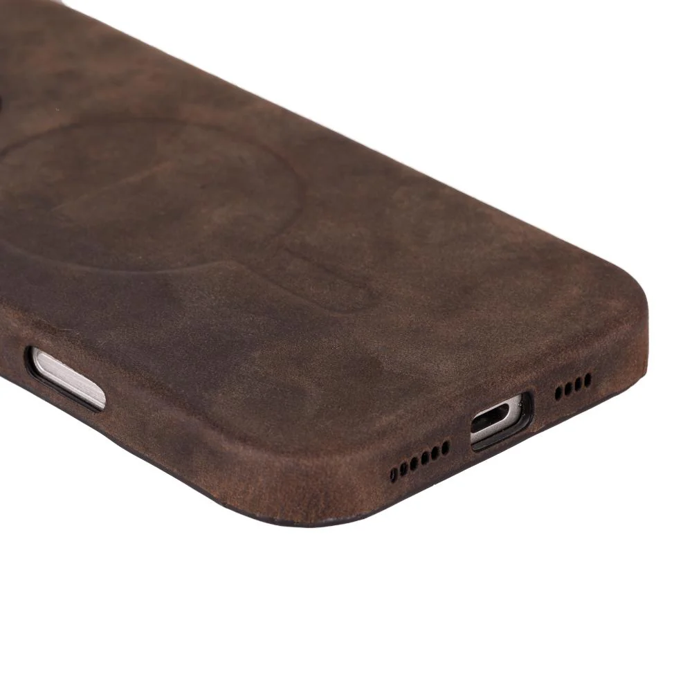 Bescherm uw telefoon met dit ultradunne, stijlvolle hoesje, vervaardigd uit premium echt leer. Het is ontworpen voor duurzaamheid en elegantie en beschikt over een pluche suède binnenkant, compatibiliteit met MagSafe en draadloos opladen, en verhoogde randen voor extra bescherming van het scherm en de camera.