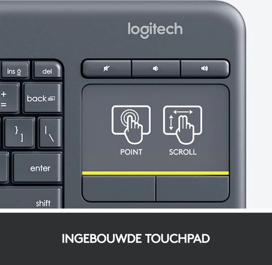 Met de Logitech K400 Plus geniet jij van een draadloos toetsenbord die werkt met de meeste televisies. Zolang jouw televisie een PC-aansluiting heeft via USB, kun je dit draadloos toetsenbord aansluiten. De K400 Plus is draadloos en heeft een touchpad voor makkelijke en snelle bediening.