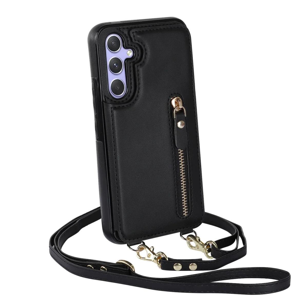 Aan de achterzijde vind je een slim weggewerkt opbergvak met ritssluiting, waarin je veilig pasjes en briefgeld kunt bewaren. De hoes wordt bovendien geleverd met een afneembaar crossbody telefoonkoord, zodat je jouw toestel comfortabel om je schouder of nek kunt dragen – ideaal tijdens reizen, shoppen of drukke dagen.