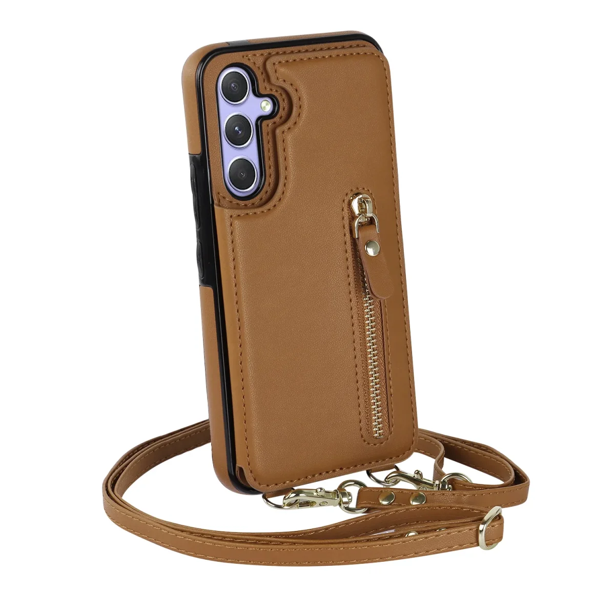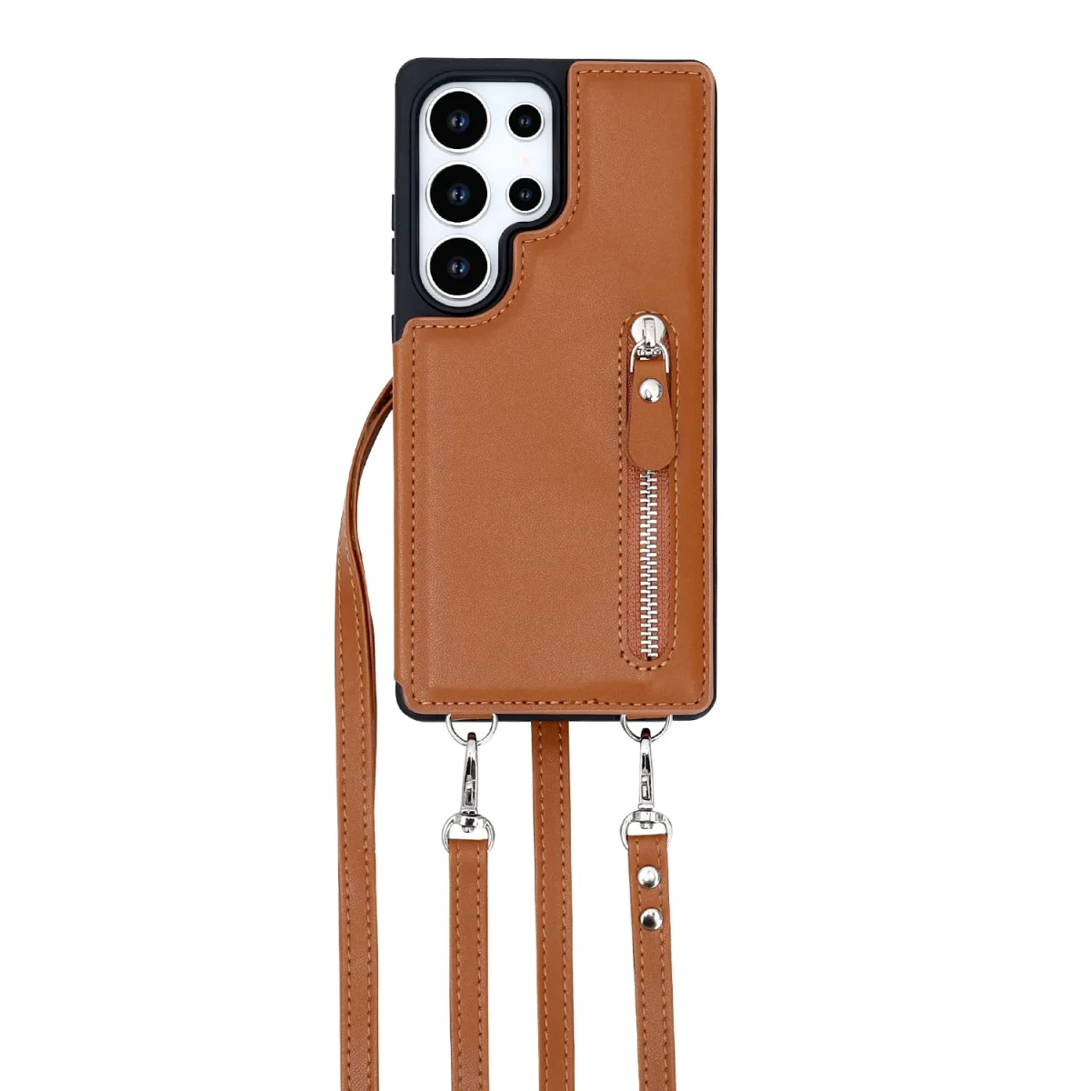 Het unieke ontwerp bevat een ritssluiting aan de achterkant waarmee je pasjes en briefgeld veilig kunt opbergen. Daarnaast wordt de hoes geleverd met een afneembaar crossbody telefoonkoord, zodat je jouw toestel eenvoudig om je nek of schouder kunt dragen – ideaal voor onderweg of drukke dagen.