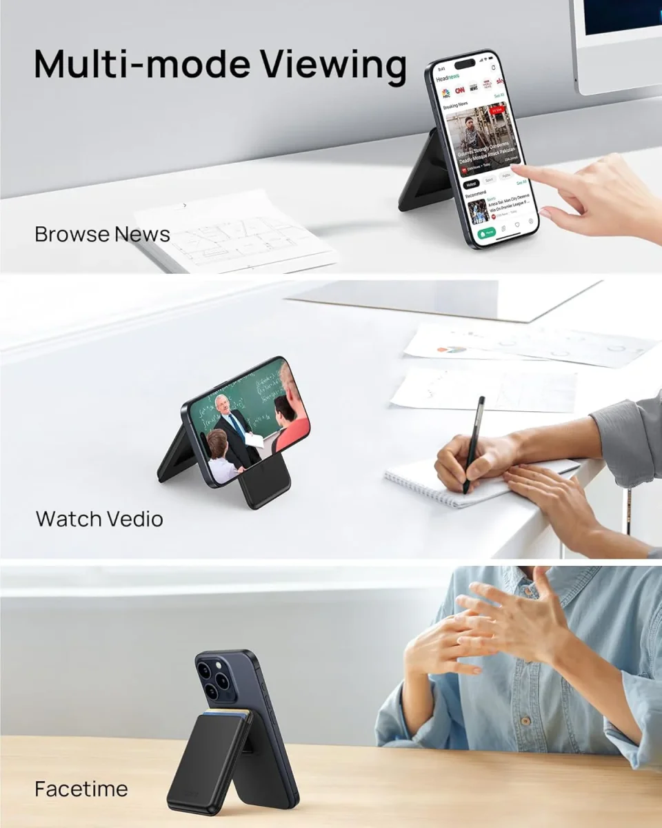 Geef je dagelijkse essentials een upgrade met deze magnetische pasjeshouder van Casemania – voorzien van een veilige achterzijde-opening en een slimme ingebouwde kickstand. Speciaal ontworpen voor iPhones met MagSafe, zodat je je kaarten en je toestel moeiteloos combineert zonder extra bulk.