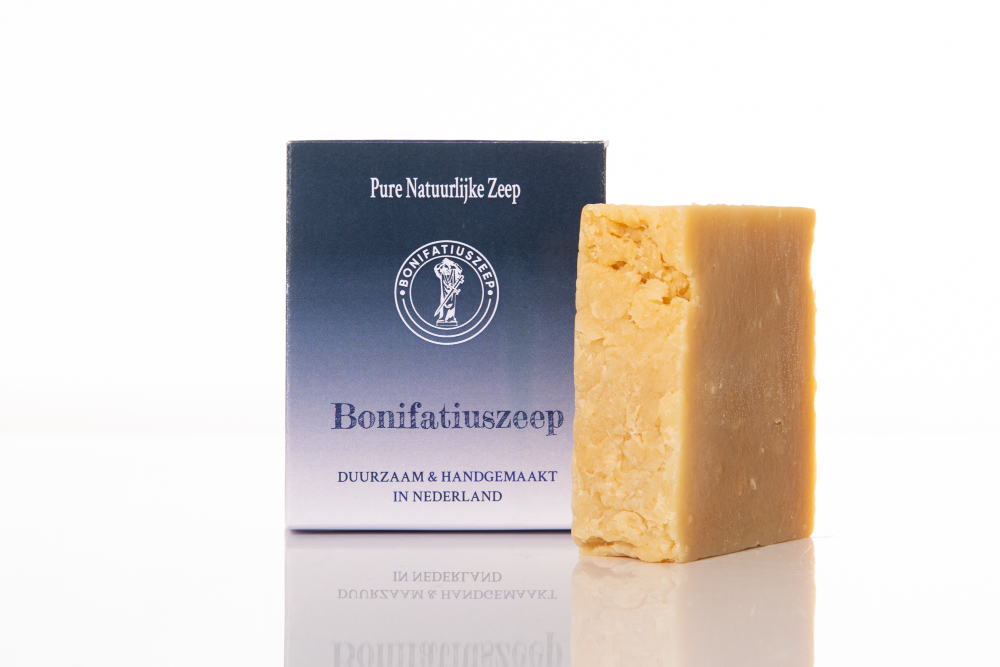 Onze Bonifatiuszeep is niet alleen goed voor je huid, maar ook voor het milieu. De zeep is verpakt in papier, waardoor er geen plastic afval ontstaat. Bovendien zijn alle ingrediënten biologisch afbreekbaar, wat betekent dat de zeep geen schade aanricht aan het milieu wanneer het door het afvoerputje spoelt.