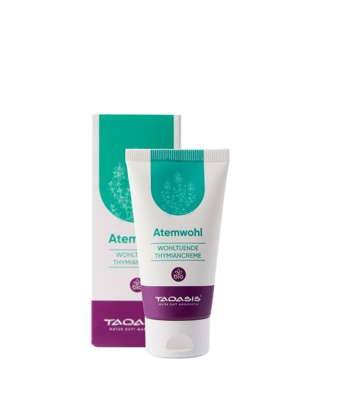 Wanneer de koudere maanden beginnen en verkoudheid zich aandient, is het extra fijn om bewust een natuurlijk verzorgingsmoment in te bouwen. De Taoasis Atemwohl Tijmcrème is een zachte, verzorgende crème met tijm, lavendel en alpenden. De formule is ontwikkeld voor een warme en milde toepassing op borst en rug, ook geschikt voor de allerkleinsten.