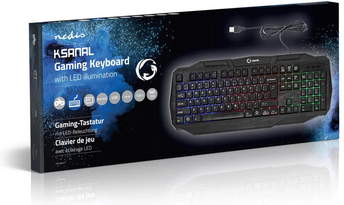 Wie zegt dat u moet stoppen met gamen alleen omdat het donker is? Voeg een nieuwe dimensie toe aan uw gaming-ervaring met dit verlichte toetsenbord van Nedis dat u tot diep in de nacht laat spelen.