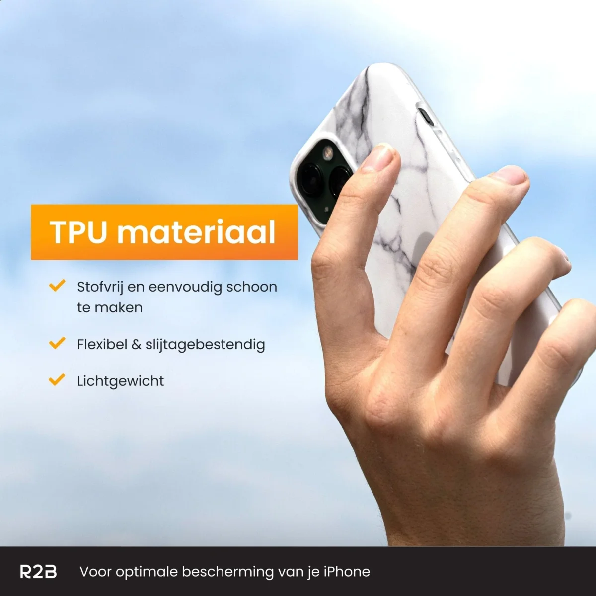 R2B iPhone 13 Marmerlook Hoesje – Screenprotector – Stijlvol & Stevig – Wit