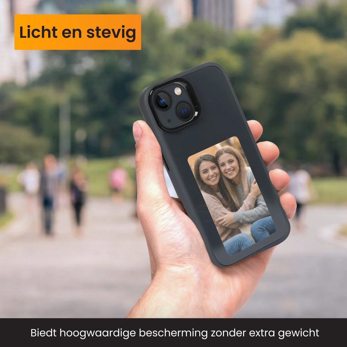 Met dit foto hoesje bepaal jij zelf wat er op de achterkant van je smartphone verschijnt. Kies een favoriete foto, quote of illustratie en verander deze wanneer jij dat wilt via de AI Phone Case app. Zo pas je je telefoon eenvoudig aan op je stemming, seizoen of speciale momenten.