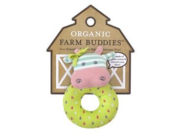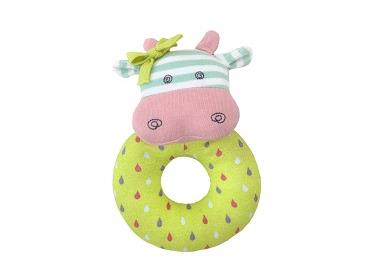 Deze leuke rammelaar Belle de koe is gemaakt van biologisch katoen bedrukt met soja inkt. De inhoud van de rammelaar is biologisch geteelde maïsvezel.
