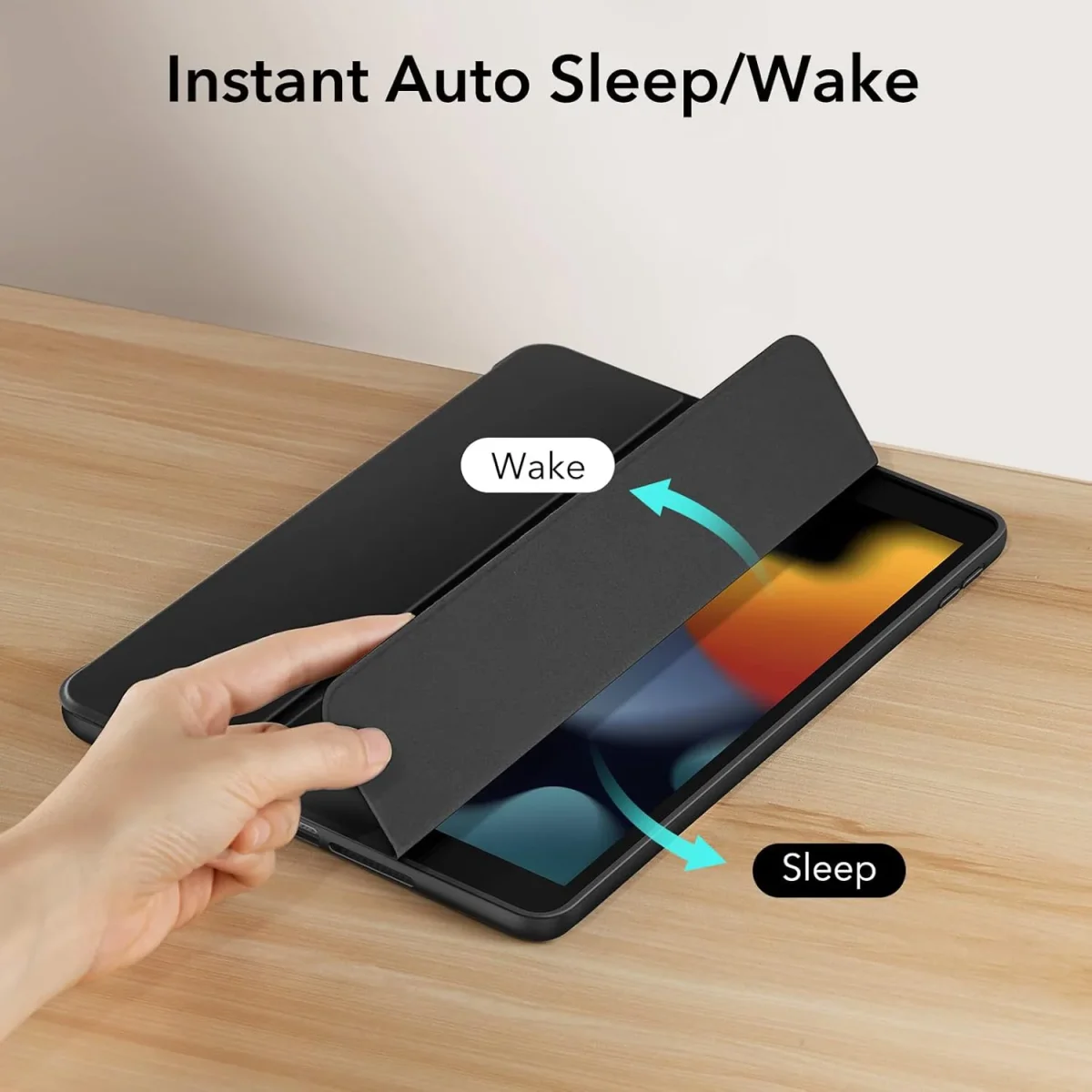 Auto Sleep/Wake Functie: Bespaar batterij zonder moeite. Open de hoes en uw iPad ontwaakt direct; sluit de hoes en hij gaat in slaapstand.