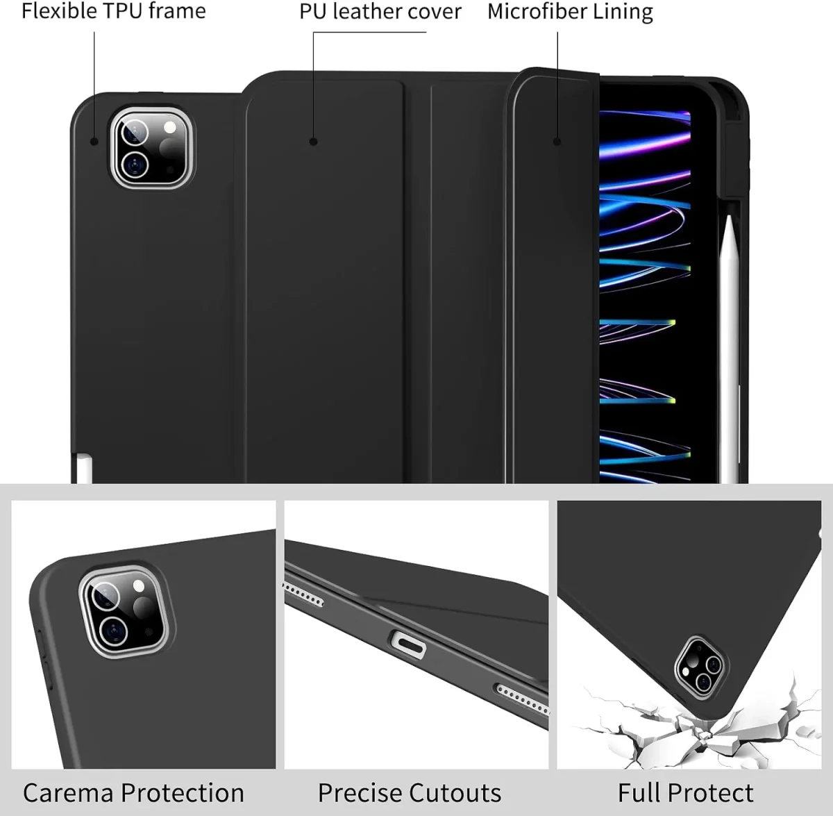 Stabiele Standaardfunctie: Transformeer uw hoes eenvoudig tot een iPad Pro hoes met standaard voor comfortabel typen, tekenen of handsfree kijken.
