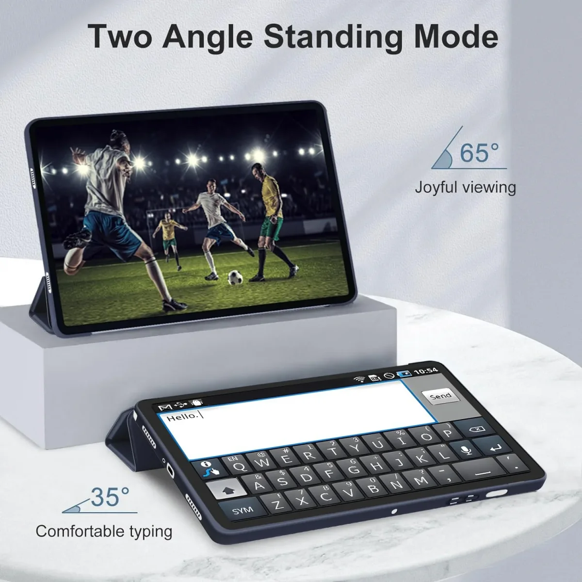 - Veelzijdige Tri-fold Standaard: Creëer eenvoudig twee verschillende standen: een comfortabele typhoek voor e-mails en een steile kijkhoek voor het bekijken van films en series.