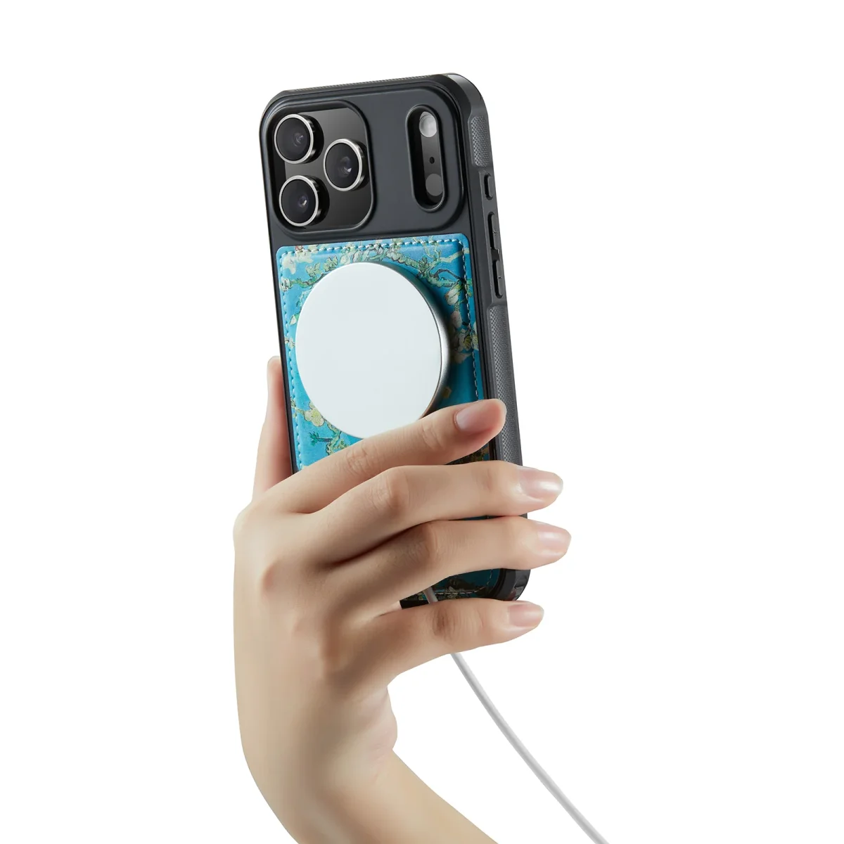 Naast het unieke design is dit hoesje ontworpen voor pure functionaliteit. Dankzij de drie kaartsleuven, het briefgeldvak en de handige standaardfunctie heeft u alles bij de hand wat u nodig heeft. De ware flexibiliteit zit in de afneembare back cover: gebruik hem los voor een slanke look. Deze is niet alleen compatibel met MagSafe, maar klikt ook moeiteloos vast op magnetische autohouders — ideaal voor veilige navigatie onderweg of voor gebruiksgemak thuis.