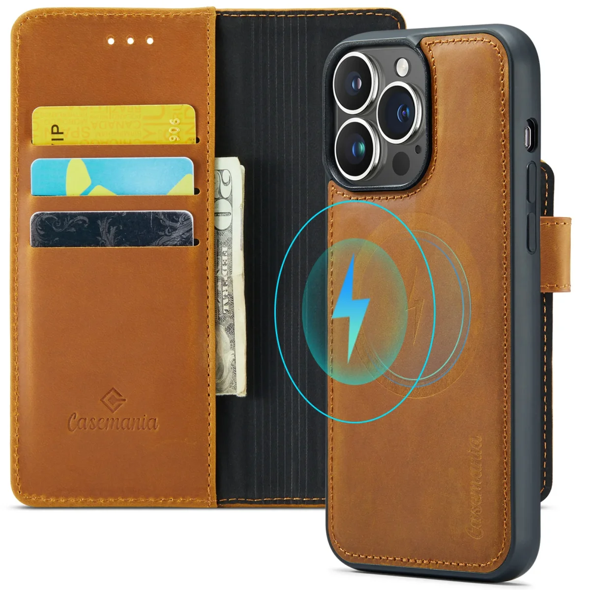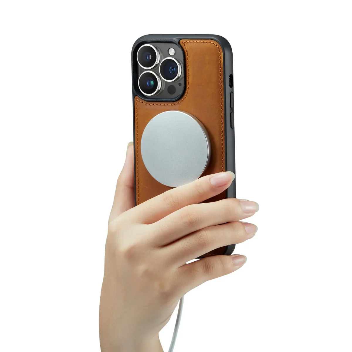 Maar de ware innovatie zit in de uitneembare backcover. Deze is magnetisch bevestigd en kan eenvoudig van de bookcase worden losgemaakt. Hierdoor kunt u uw telefoon moeiteloos draadloos opladen of gebruikmaken van al uw MagSafe-accessoires, zonder de hele portemonneehoes te moeten verwijderen. Ook op de weg is dit ideaal: de magnetische backcover klikt naadloos vast in uw auto-telefoonhouder.