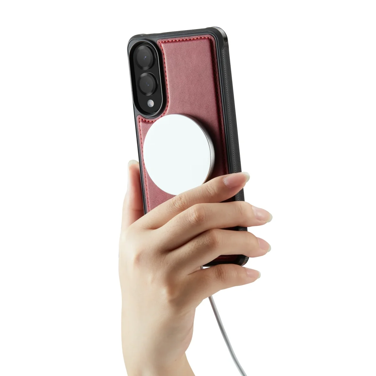 De kleur burgundy red geeft deze case een rijke en stijlvolle uitstraling. Het diepe rood voelt warm en klassiek aan, met een moderne twist – een kleur die elegantie uitstraalt zonder opvallend te zijn, en zich makkelijk laat combineren met verschillende stijlen.