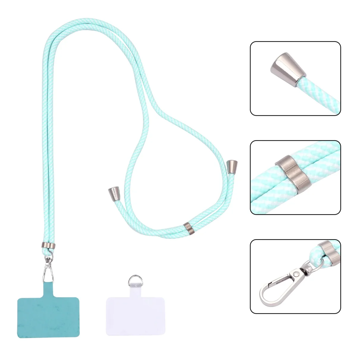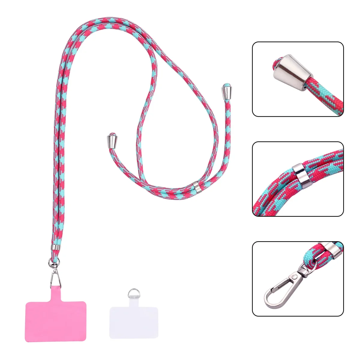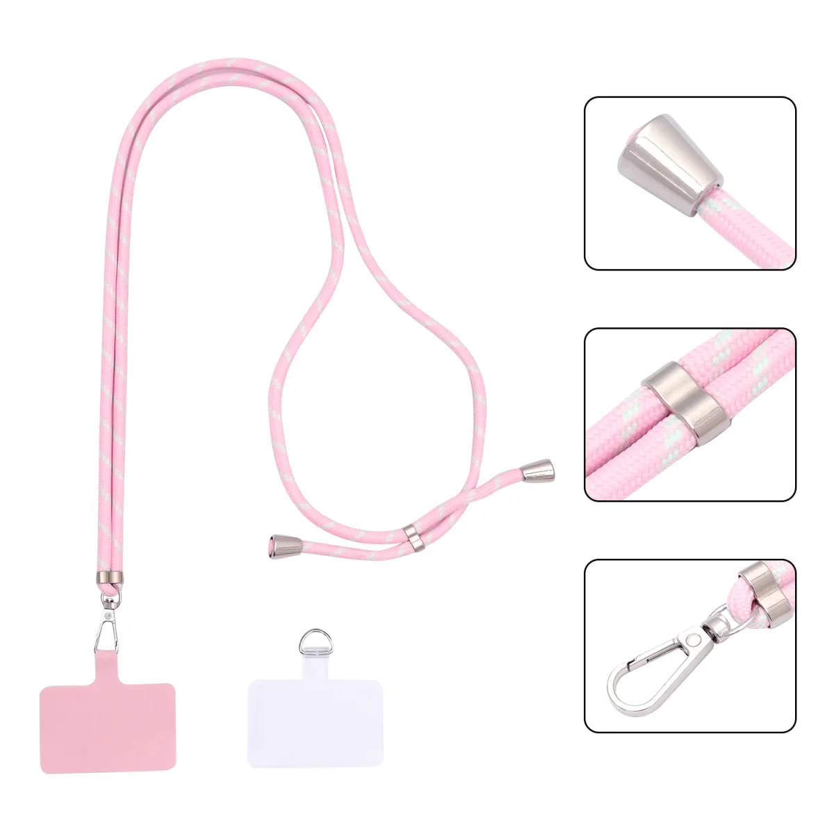 Geschikt voor vrijwel elke smartphone met een gesloten onderzijde in het hoesje – van iPhones tot Samsung, Xiaomi, Google Pixel en meer. Bevestigen is eenvoudig: plaats het siliconen plaatje in je hoesje, leid het lusje naar buiten via de laadpoort, klik het koord vast en je bent klaar om te gaan.